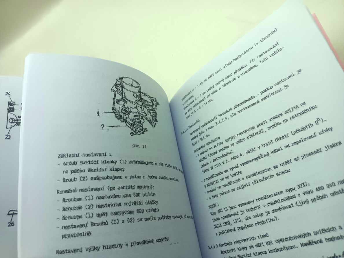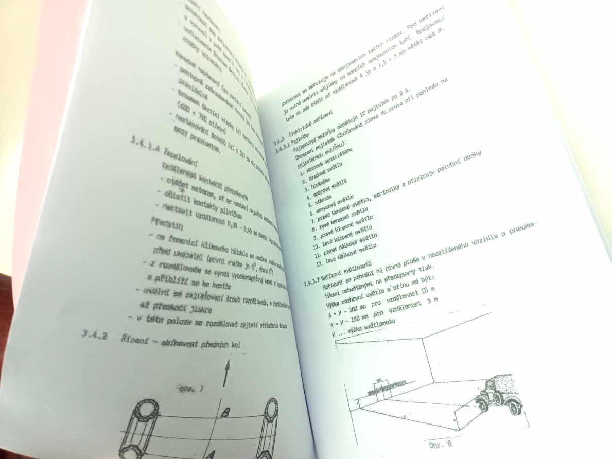 Jde o nově vytištěnou černobílou kopii, neořezaná brožura – sešit, sešitá jen sponami, pokud se použitím rozešijí, sami si ji doma opravíte kancelářskou sešívačkou. Kopírováno podle originálu, text s neaktuálními a z pohledu údržbářko-opravárenského nadbytečnými informacemi nemusí být přenesen. Jazyk i kvalitu přepisu brožury odhadnete z obrázkových ukázek konkrétní nabídky. Písmo může být zmenšené (originál je A4, ale vytištění je na A5), barva přebalu – desky přední strany se mohou lišit od vyobrazení. Kvalita přetisku je kolísavá, nemůžeme garantovat čitelnost větší než 80 %. Je to dáno jednak nedokonalostí při přetisku, jde o kopírování starých a notně používaných příruček, nikoliv nově přepsaný text a také výtisk již v originále nebývá kvalitní. V mnoha případech jde ještě o text psaný ručně strojem. Tato kopie neslouží jako plnohodnotná knížka ke čtení, ale jen jako částečná náhrada za již těžko sehnatelnou původní knížku a musíte se smířit s tím, že nějaká sdělení či obrázky nerozluštíte. Proto prosím tento výtisk neobjednávejte, pokud máte možnost sehnat novotisk nebo dobře čitelný originál, tento výtisk se s nimi nemůže srovnávat ani v reprodukci obrázků ani v čitelnosti textů a nelze tento fakt uplatnit při případné reklamaci. Garantuje jen počet potištěných stránek a nikoliv to, že vše dokonale přečtete. Pokud od nabízeného sešitu očekáváte specifikaci něčeho konkrétního (např. schéma elektro zapojení, hydrauliky, zda obsahuje obrázky apod.), prosím předem položte dotaz emailem před koupí, sdělím Vám, zda se požadovaná informace v sešitě nachází. Zejména u vyššího počtu stran je nutné počítat s tím, že sdělená textová informace je nadřazena nad estetickým a knižním zpracováním.