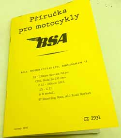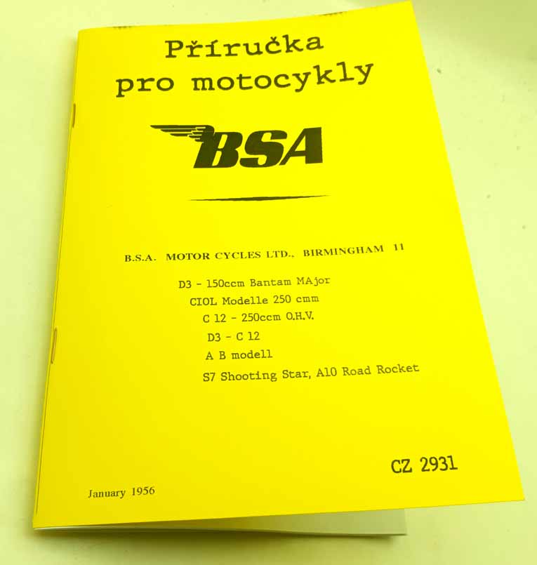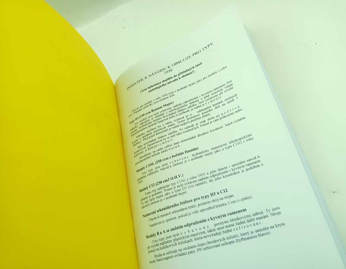 BSA Model M20 500ccm český strojový překlad doplňku anglického návodu k obsluze – reprint. – původní název: Maitenance Manual and Instruction book