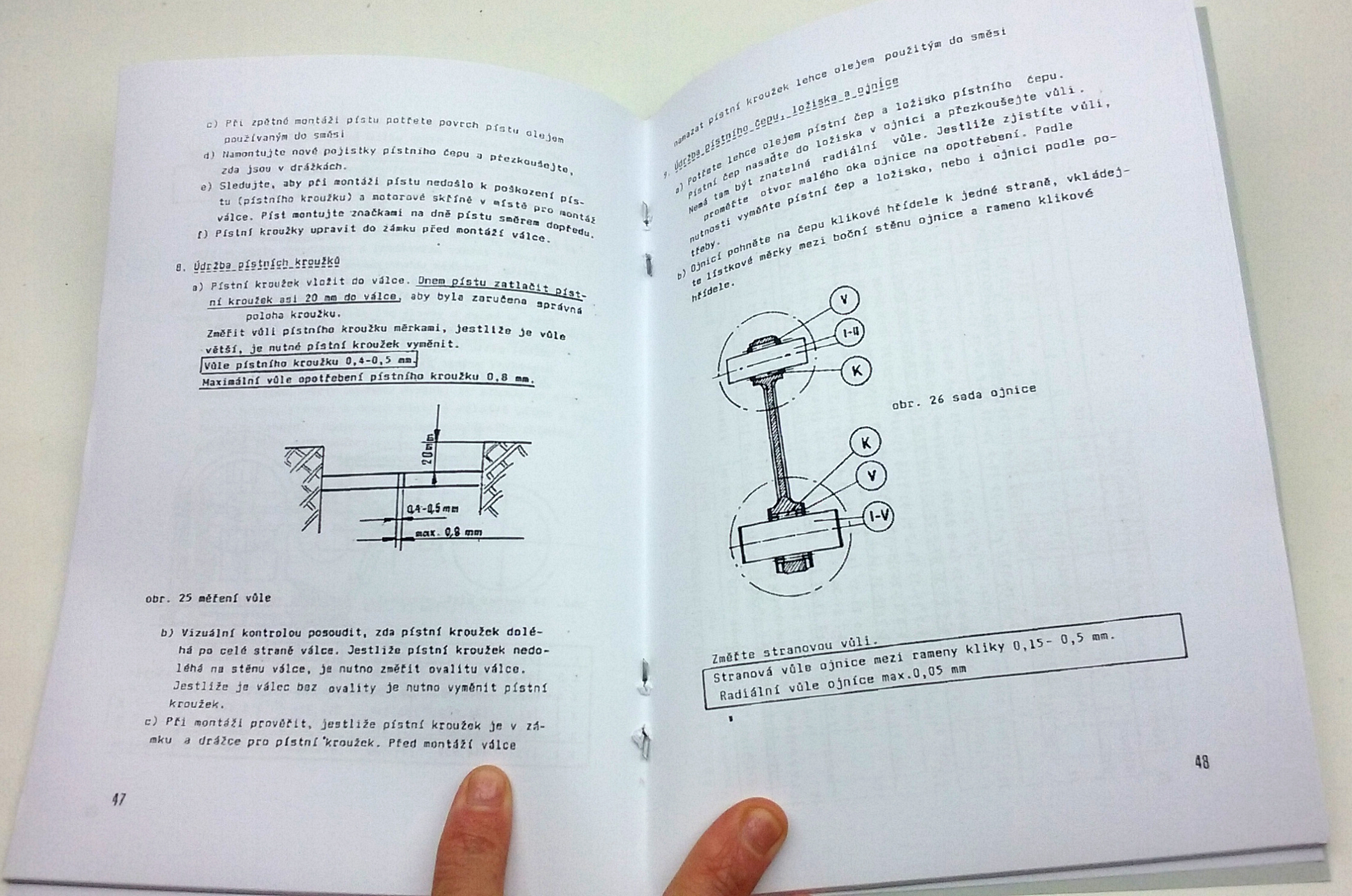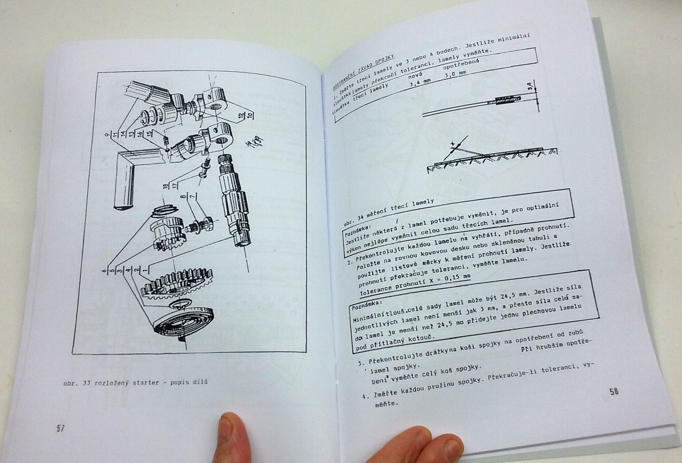 Jde o nově vytištěnou černobílou kopii, neořezaná brožura – sešit, sešitá jen sponami, pokud se použitím rozešijí, sami si ji doma opravíte kancelářskou sešívačkou. Kopírováno podle originálu, text s neaktuálními a z pohledu údržbářko-opravárenského nadbytečnými informacemi nemusí být přenesen. Jazyk i kvalitu přepisu brožury odhadnete z obrázkových ukázek konkrétní nabídky. Písmo může být zmenšené (originál je A4, ale vytištění je na A5), barva přebalu – desky přední strany se mohou lišit od vyobrazení. Kvalita přetisku je kolísavá, nemůžeme garantovat čitelnost větší než 80 %. Je to dáno jednak nedokonalostí při přetisku, jde o kopírování starých a notně používaných příruček, nikoliv nově přepsaný text a také výtisk již v originále nebývá kvalitní. V mnoha případech jde ještě o text psaný ručně strojem. Tato kopie neslouží jako plnohodná knížka ke čtení, ale jen jako částečná náhrada za již těžko sehnatelnou původní knížku a musíte se smířit s tím, že nějaká sdělení či obrázky nerozluštíte. Proto prosím tento výtisk neobjednávejte, pokud máte možnost sehnat novotisk nebo dobře čitelný originál, tento výtisk se s nimi nemůže srovnávat ani v reprodukci obrázků ani v čitelnosti textů a nelze tento fakt uplatnit při případné reklamaci. Garantuje jen počet potištěných stránek a nikoliv to, že vše dokonale přečtete. Pokud od nabízeného sešitu očekáváte specifikaci něčeho konkrétního (např. schéma elektro zapojení, hydrauliky, zda obsahuje obrázky apod.), prosím předem položte dotaz emailem před koupí, sdělím Vám, zda se požadovaná informace v sešitě nachází. Zejména u vyššího počtu stran je nutné počítat s tím, že sdělená textová informace je nadřazena nad estetickým a knižním zpracováním.
