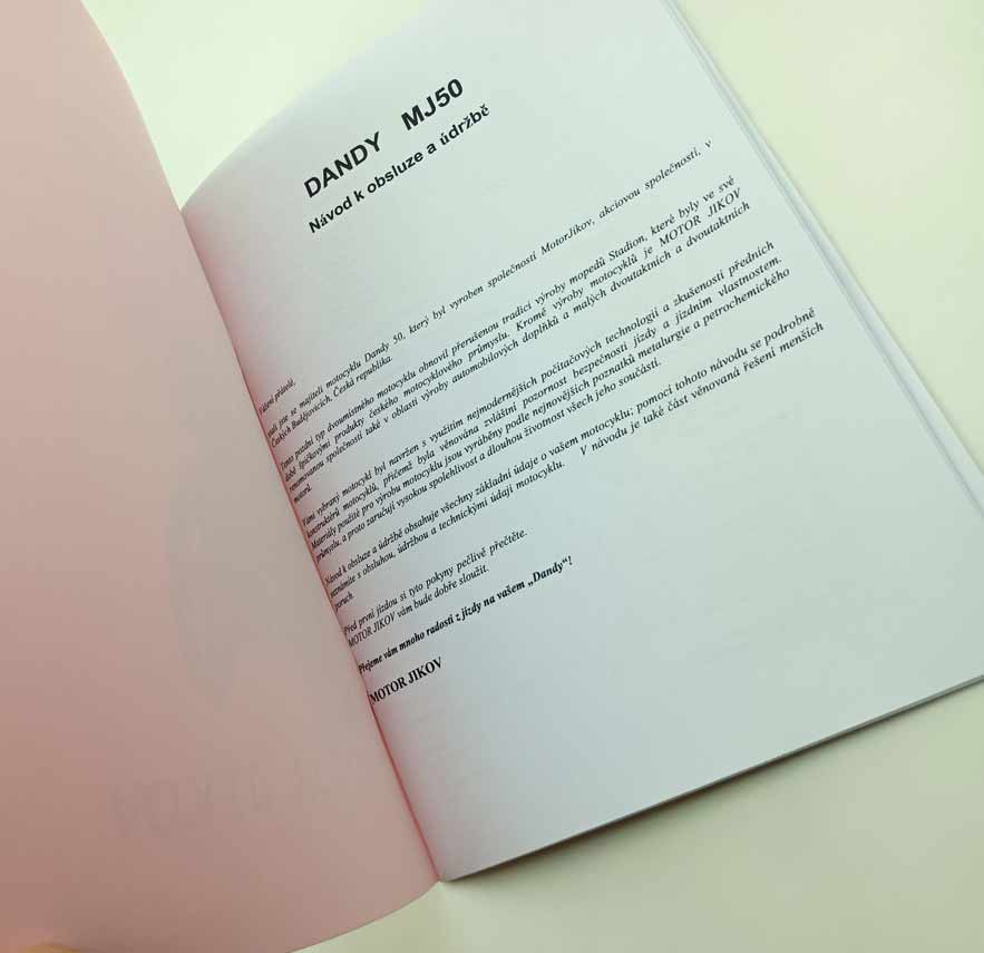 Dandy MJ 50 – Moto JIKOV – Návod k obsluze reprint.