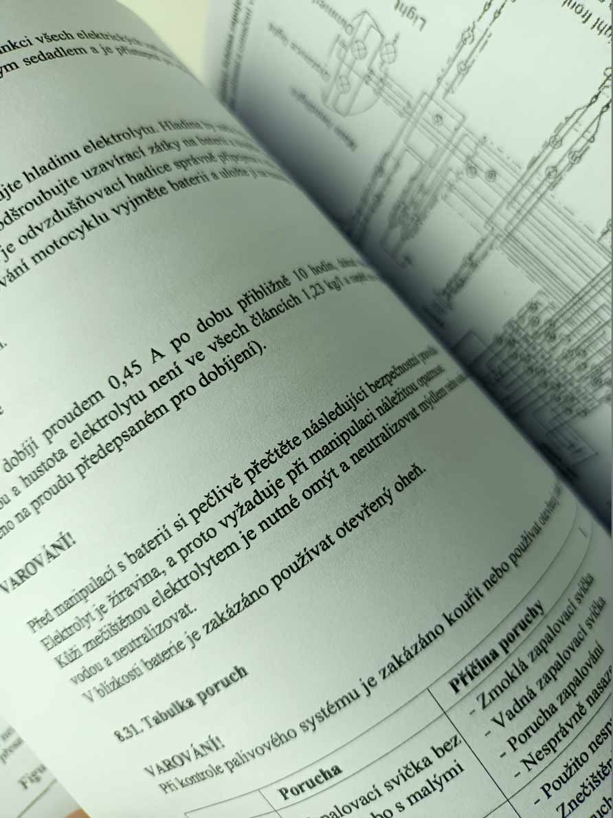 Jde o nově vytištěnou černobílou kopii, neořezaná brožura – sešit, sešitá jen sponami, pokud se použitím rozešijí, sami si ji doma opravíte kancelářskou sešívačkou. Kopírováno podle originálu, text s neaktuálními a z pohledu údržbářko-opravárenského nadbytečnými informacemi nemusí být přenesen. Jazyk i kvalitu přepisu brožury odhadnete z obrázkových ukázek konkrétní nabídky. Písmo může být zmenšené (originál je A4, ale vytištění je na A5), barva přebalu – desky přední strany se mohou lišit od vyobrazení. Kvalita přetisku je kolísavá, nemůžeme garantovat čitelnost větší než 80 %. Je to dáno jednak nedokonalostí při přetisku, jde o kopírování starých a notně používaných příruček, nikoliv nově přepsaný text a také výtisk již v originále nebývá kvalitní. V mnoha případech jde ještě o text psaný ručně strojem. Tato kopie neslouží jako plnohodná knížka ke čtení, ale jen jako částečná náhrada za již těžko sehnatelnou původní knížku a musíte se smířit s tím, že nějaká sdělení či obrázky nerozluštíte. Proto prosím tento výtisk neobjednávejte, pokud máte možnost sehnat novotisk nebo dobře čitelný originál, tento výtisk se s nimi nemůže srovnávat ani v reprodukci obrázků ani v čitelnosti textů a nelze tento fakt uplatnit při případné reklamaci. Garantuje jen počet potištěných stránek a nikoliv to, že vše dokonale přečtete. Pokud od nabízeného sešitu očekáváte specifikaci něčeho konkrétního (např. schéma elektro zapojení, hydrauliky, zda obsahuje obrázky apod.), prosím předem položte dotaz emailem před koupí, sdělím Vám, zda se požadovaná informace v sešitě nachází. Zejména u vyššího počtu stran je nutné počítat s tím, že sdělená textová informace je nadřazena nad estetickým a knižním zpracováním.