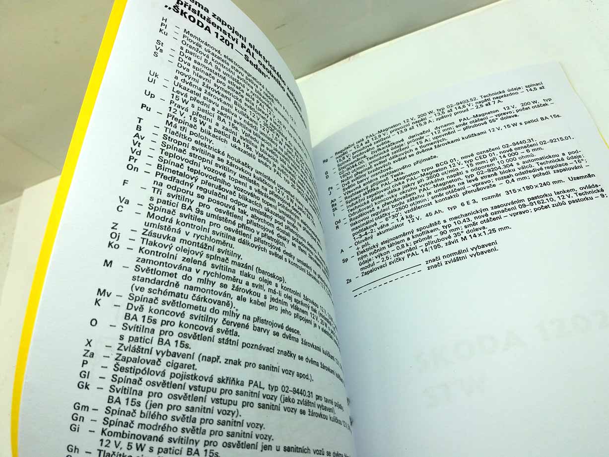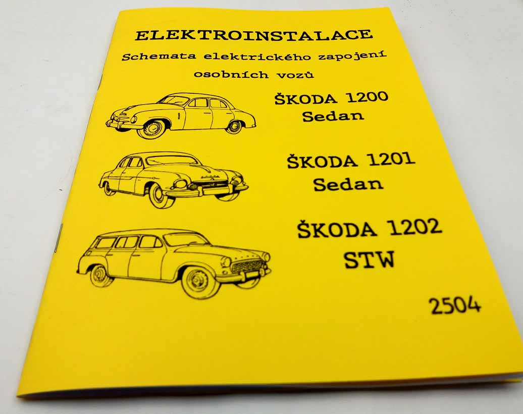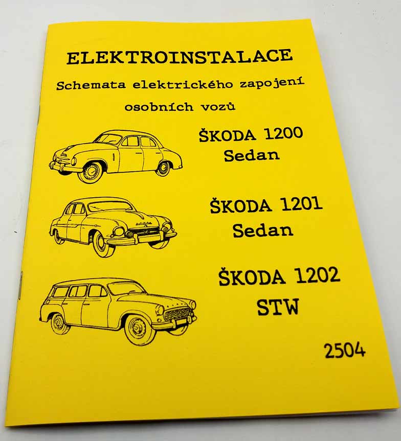 Elektroinstalace. Schemata elektrického zapojení vozů Škoda 1200, 1201 Sedan, Škoda 1202 STW. Reprint