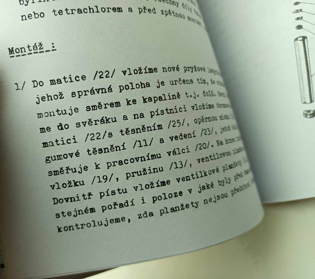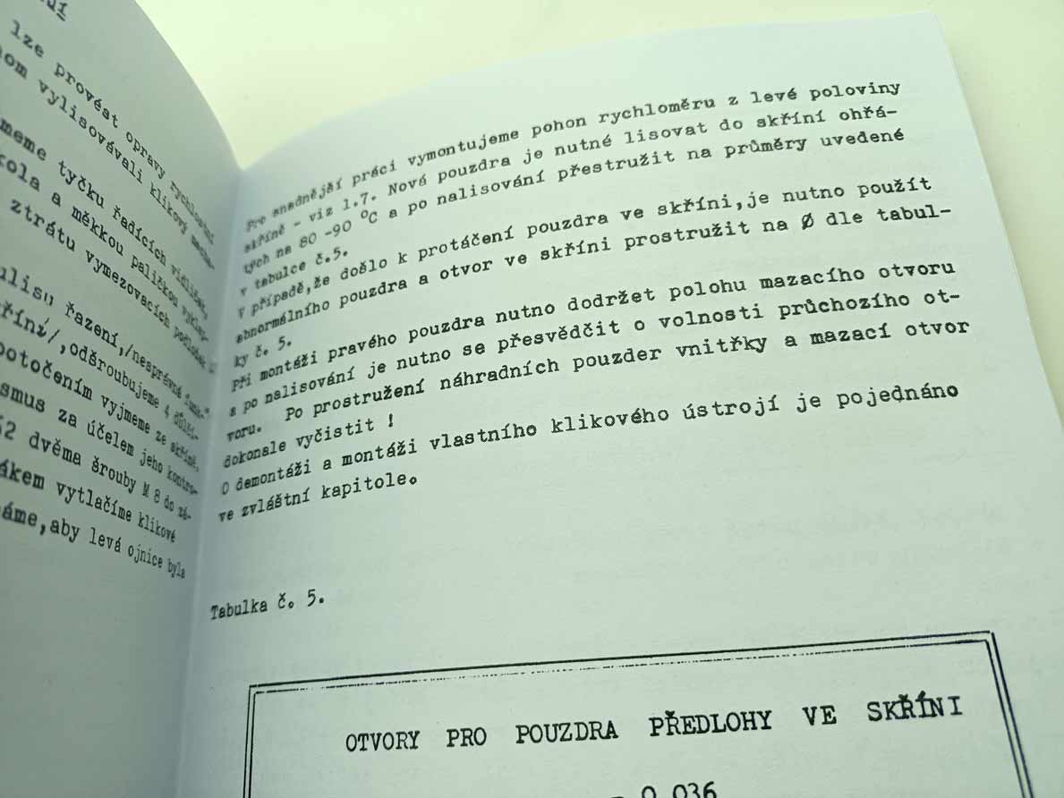 Jde o nově vytištěnou černobílou kopii, neořezaná brožura – sešit, sešitá jen sponami, pokud se použitím rozešijí, sami si ji doma opravíte kancelářskou sešívačkou. Kopírováno podle originálu, text s neaktuálními a z pohledu údržbářko-opravárenského nadbytečnými informacemi nemusí být přenesen. Jazyk i kvalitu přepisu brožury odhadnete z obrázkových ukázek konkrétní nabídky. Písmo může být zmenšené (originál je A4, ale vytištění je na A5), barva přebalu – desky přední strany se mohou lišit od vyobrazení. Kvalita přetisku je kolísavá, nemůžeme garantovat čitelnost větší než 80 %. Je to dáno jednak nedokonalostí při přetisku, jde o kopírování starých a notně používaných příruček, nikoliv nově přepsaný text a také výtisk již v originále nebývá kvalitní. V mnoha případech jde ještě o text psaný ručně strojem. Tato kopie neslouží jako plnohodná knížka ke čtení, ale jen jako částečná náhrada za již těžko sehnatelnou původní knížku a musíte se smířit s tím, že nějaká sdělení či obrázky nerozluštíte. Proto prosím tento výtisk neobjednávejte, pokud máte možnost sehnat novotisk nebo dobře čitelný originál, tento výtisk se s nimi nemůže srovnávat ani v reprodukci obrázků ani v čitelnosti textů a nelze tento fakt uplatnit při případné reklamaci. Garantuje jen počet potištěných stránek a nikoliv to, že vše dokonale přečtete. Pokud od nabízeného sešitu očekáváte specifikaci něčeho konkrétního (např. schéma elektro zapojení, hydrauliky, zda obsahuje obrázky apod.), prosím předem položte dotaz emailem před koupí, sdělím Vám, zda se požadovaná informace v sešitě nachází. Zejména u vyššího počtu stran je nutné počítat s tím, že sdělená textová informace je nadřazena nad estetickým a knižním zpracováním.