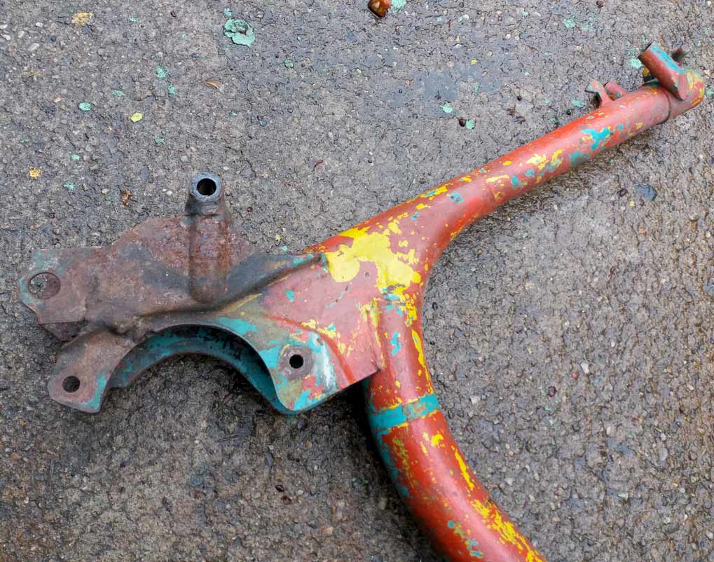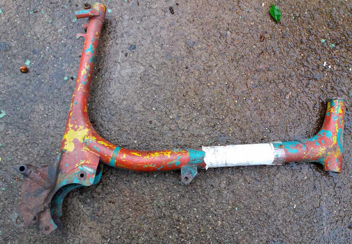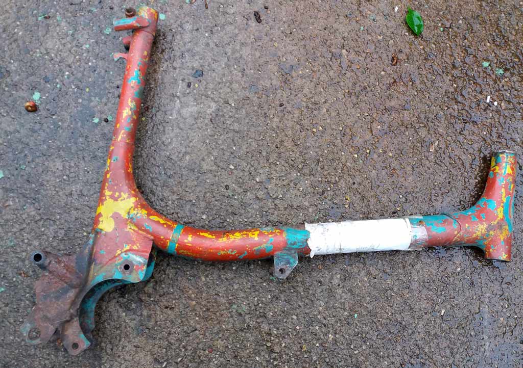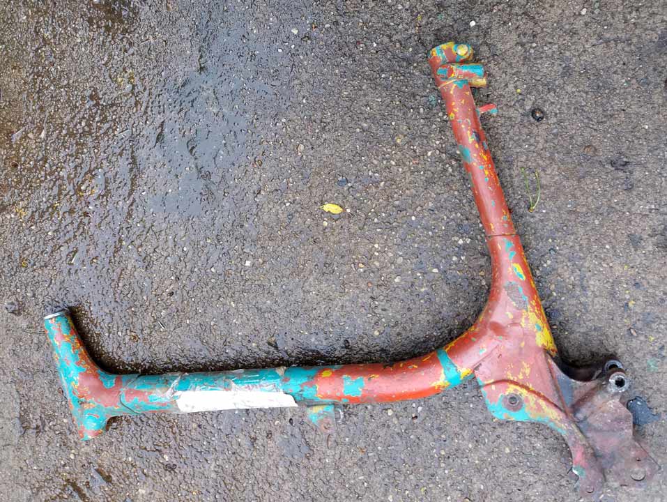 Kostra moped Stadion. Kostra na Stadiona, nedokončená úprava na zadní kyvnou vidlici, asi pro závody. Stav přesně dle obrázků a na renovaci. Kostru nelze poslat, pouze osobní odběr na Praze 4.