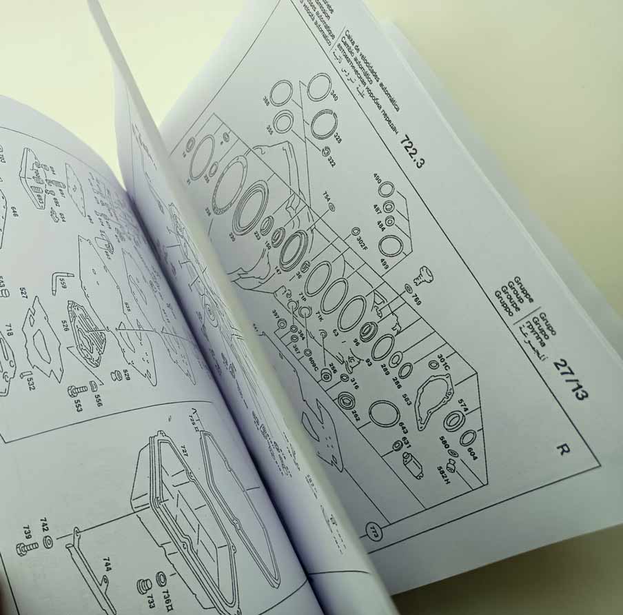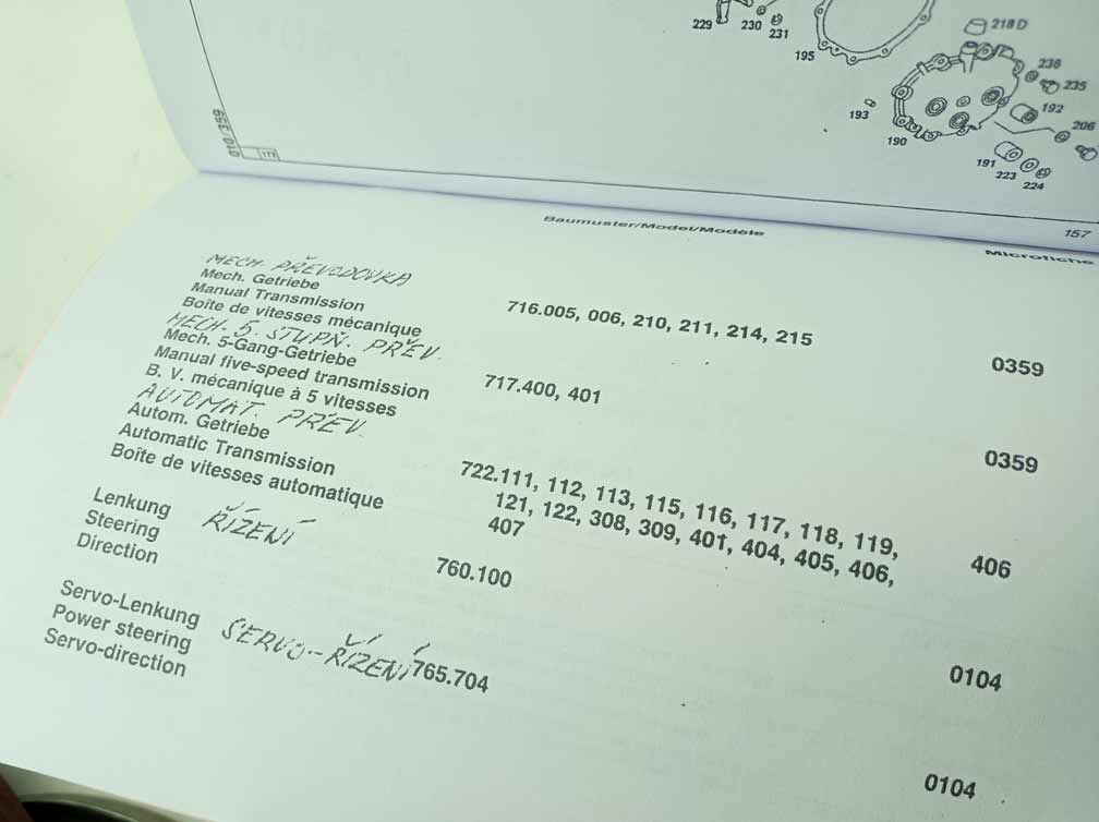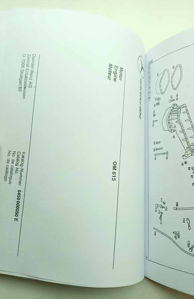 Mercedes Benz Modell 123 – Obrázková katalog náhradních dílů 2 část reprint. V 2 části je uveden motor typu OM 615 ( Diesel ), 5 st.převodovka, automatická převodovka, řízení a servořízení – nenajdete zde podvozek nástavby, karoserii. Uveden je zde jen obrázek dílu a jeho číslo. Vytištěno podélně na A5, takže pro čtení je potřeba stránku otočit o 90 stupňů – viz ukázka.