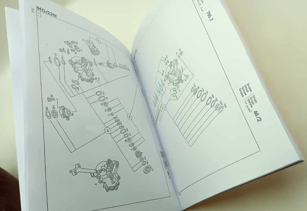 Jde o nově vytištěnou černobílou kopii, neořezaná brožura – sešit, sešitá jen sponami, pokud se použitím rozešijí, sami si ji doma opravíte kancelářskou sešívačkou. Kopírováno podle originálu, text s neaktuálními a z pohledu údržbářko-opravárenského nadbytečnými informacemi nemusí být přenesen. Jazyk i kvalitu přepisu brožury odhadnete z obrázkových ukázek konkrétní nabídky. Písmo může být zmenšené (originál je A4, ale vytištění je na A5), barva přebalu – desky přední strany se mohou lišit od vyobrazení. Kvalita přetisku je kolísavá, nemůžeme garantovat čitelnost větší než 80 %. Je to dáno jednak nedokonalostí při přetisku, jde o kopírování starých a notně používaných příruček, nikoliv nově přepsaný text a také výtisk již v originále nebývá kvalitní. V mnoha případech jde ještě o text psaný ručně strojem. Tato kopie neslouží jako plnohodnotná knížka ke čtení, ale jen jako částečná náhrada za již těžko sehnatelnou původní knížku a musíte se smířit s tím, že nějaká sdělení či obrázky nerozluštíte. Proto prosím tento výtisk neobjednávejte, pokud máte možnost sehnat novotisk nebo dobře čitelný originál, tento výtisk se s nimi nemůže srovnávat ani v reprodukci obrázků ani v čitelnosti textů a nelze tento fakt uplatnit při případné reklamaci. Garantuje jen počet potištěných stránek a nikoliv to, že vše dokonale přečtete. Pokud od nabízeného sešitu očekáváte specifikaci něčeho konkrétního (např. schéma elektro zapojení, hydrauliky, zda obsahuje obrázky apod.), prosím předem položte dotaz emailem před koupí, sdělím Vám, zda se požadovaná informace v sešitě nachází. Zejména u vyššího počtu stran je nutné počítat s tím, že sdělená textová informace je nadřazena nad estetickým a knižním zpracováním.