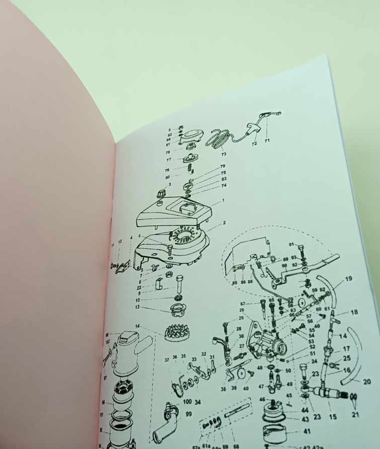 Jde o nově vytištěnou černobílou kopii, neořezaná brožura – sešit, sešitá jen sponami, pokud se použitím rozešijí, sami si ji doma opravíte kancelářskou sešívačkou. Kopírováno podle originálu, text s neaktuálními a z pohledu údržbářko-opravárenského nadbytečnými informacemi nemusí být přenesen. Jazyk i kvalitu přepisu brožury odhadnete z obrázkových ukázek konkrétní nabídky. Písmo může být zmenšené (originál je A4, ale vytištění je na A5), barva přebalu – desky přední strany se mohou lišit od vyobrazení. Kvalita přetisku je kolísavá, nemůžeme garantovat čitelnost větší než 80 %. Je to dáno jednak nedokonalostí při přetisku, jde o kopírování starých a notně používaných příruček, nikoliv nově přepsaný text a také výtisk již v originále nebývá kvalitní. V mnoha případech jde ještě o text psaný ručně strojem. Tato kopie neslouží jako plnohodnotná knížka ke čtení, ale jen jako částečná náhrada za již těžko sehnatelnou původní knížku a musíte se smířit s tím, že nějaká sdělení či obrázky nerozluštíte. Proto prosím tento výtisk neobjednávejte, pokud máte možnost sehnat novotisk nebo dobře čitelný originál, tento výtisk se s nimi nemůže srovnávat ani v reprodukci obrázků ani v čitelnosti textů a nelze tento fakt uplatnit při případné reklamaci. Garantuje jen počet potištěných stránek a nikoliv to, že vše dokonale přečtete. Pokud od nabízeného sešitu očekáváte specifikaci něčeho konkrétního (např. schéma elektro zapojení, hydrauliky, zda obsahuje obrázky apod.), prosím předem položte dotaz emailem před koupí, sdělím Vám, zda se požadovaná informace v sešitě nachází. Zejména u vyššího počtu stran je nutné počítat s tím, že sdělená textová informace je nadřazena nad estetickým a knižním zpracováním.