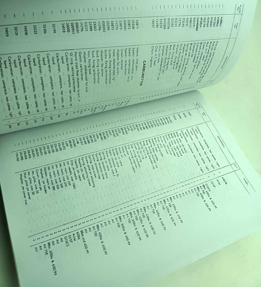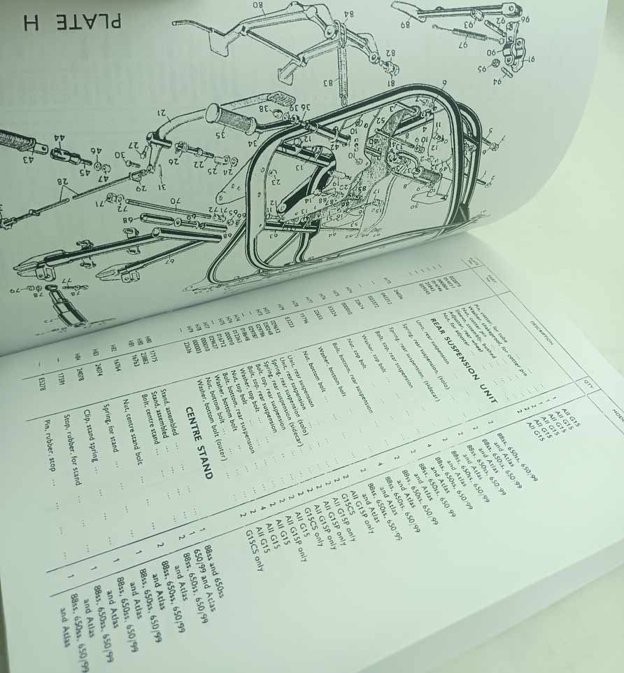 Norton Dominator, 88, 99, 650SS, Atlas, P11, G15, N15 – Parts Catalogue reprint.