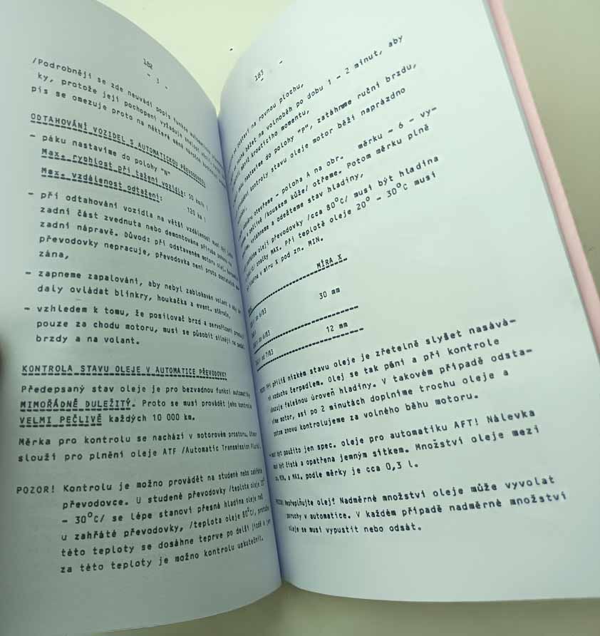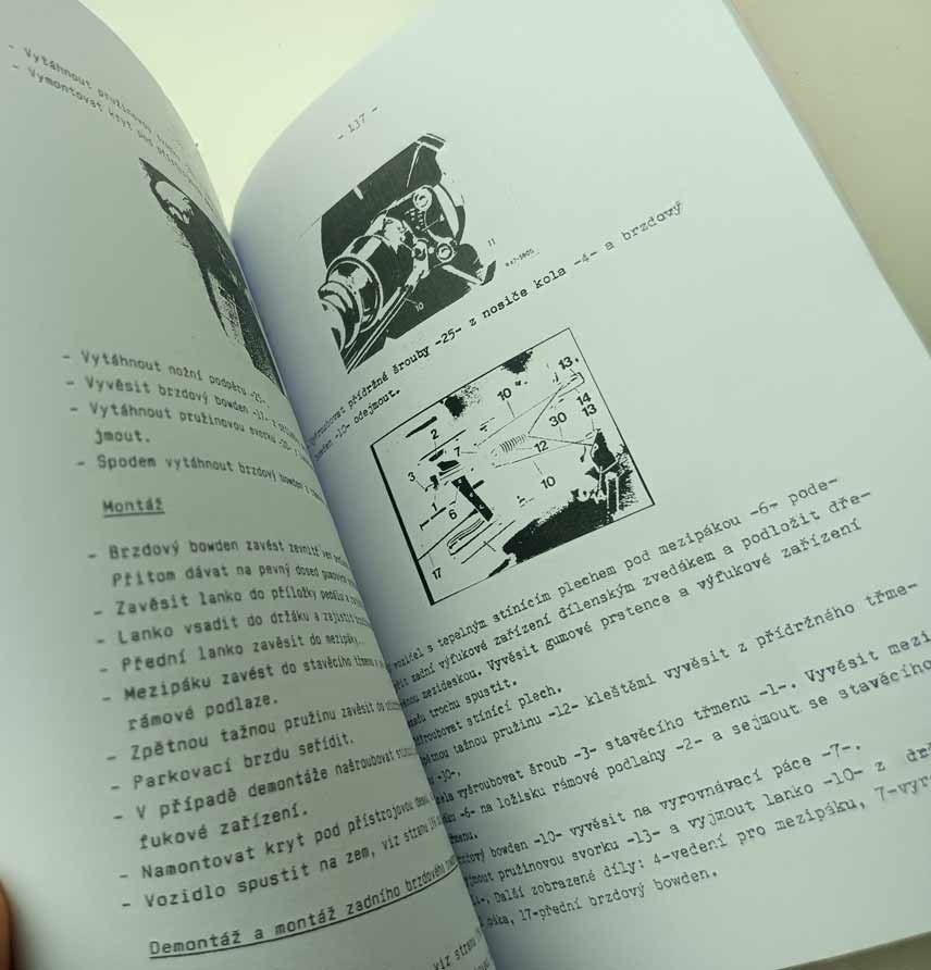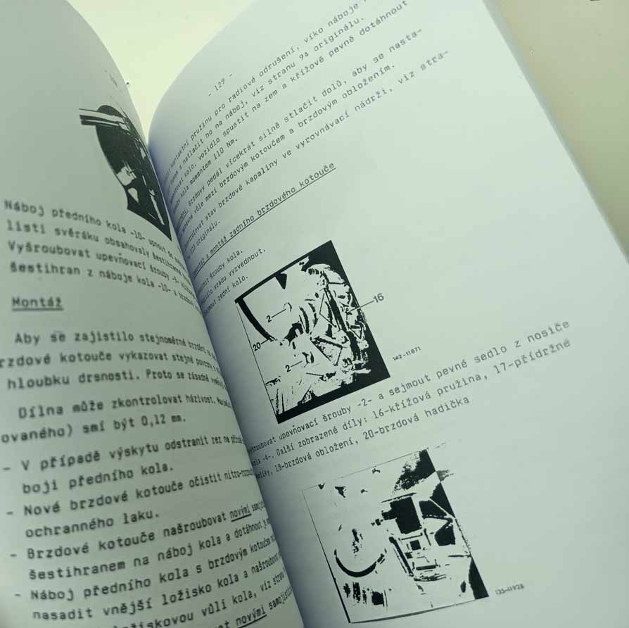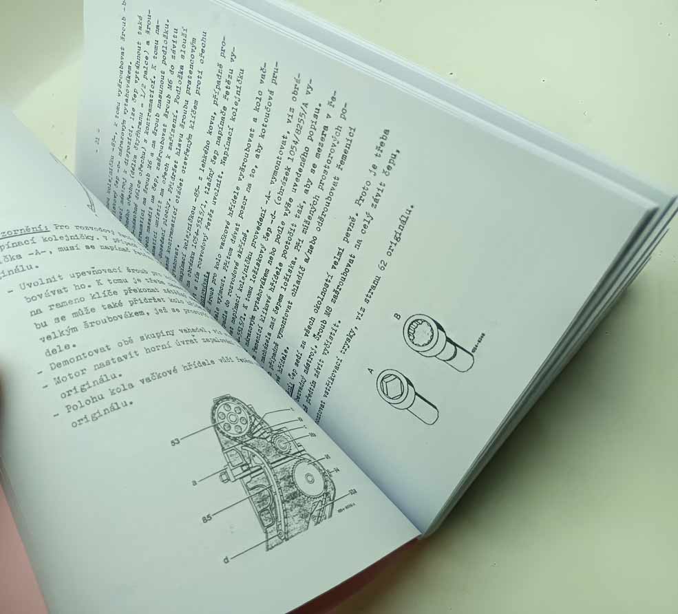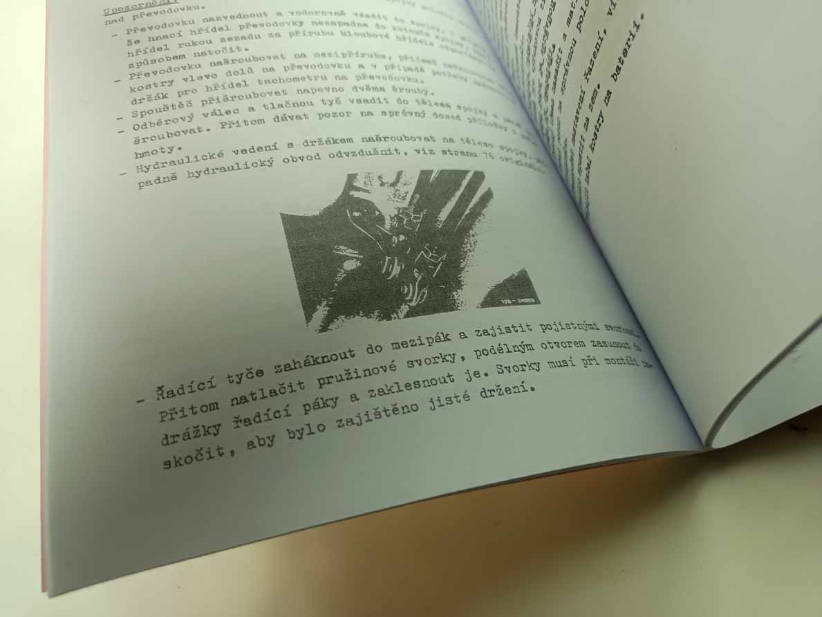 Jde o nově vytištěnou černobílou kopii, neořezaná brožura – sešit, sešitá jen sponami, pokud se použitím rozešijí, sami si ji doma opravíte kancelářskou sešívačkou. Kopírováno podle originálu, text s neaktuálními a z pohledu údržbářko-opravárenského nadbytečnými informacemi nemusí být přenesen. Jazyk i kvalitu přepisu brožury odhadnete z obrázkových ukázek konkrétní nabídky. Písmo může být zmenšené (originál je A4, ale vytištění je na A5), barva přebalu – desky přední strany se mohou lišit od vyobrazení. Kvalita přetisku je kolísavá, nemůžeme garantovat čitelnost větší než 80 %. Je to dáno jednak nedokonalostí při přetisku, jde o kopírování starých a notně používaných příruček, nikoliv nově přepsaný text a také výtisk již v originále nebývá kvalitní. V mnoha případech jde ještě o text psaný ručně strojem. Tato kopie neslouží jako plnohodnotná knížka ke čtení, ale jen jako částečná náhrada za již těžko sehnatelnou původní knížku a musíte se smířit s tím, že nějaká sdělení či obrázky nerozluštíte. Proto prosím tento výtisk neobjednávejte, pokud máte možnost sehnat novotisk nebo dobře čitelný originál, tento výtisk se s nimi nemůže srovnávat ani v reprodukci obrázků ani v čitelnosti textů a nelze tento fakt uplatnit při případné reklamaci. Garantuje jen počet potištěných stránek a nikoliv to, že vše dokonale přečtete. Pokud od nabízeného sešitu očekáváte specifikaci něčeho konkrétního (např. schéma elektro zapojení, hydrauliky, zda obsahuje obrázky apod.), prosím předem položte dotaz emailem před koupí, sdělím Vám, zda se požadovaná informace v sešitě nachází. Zejména u vyššího počtu stran je nutné počítat s tím, že sdělená textová informace je nadřazena nad estetickým a knižním zpracováním.