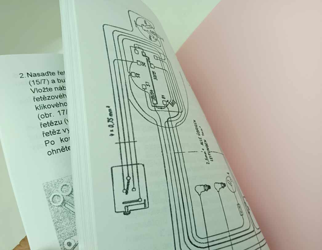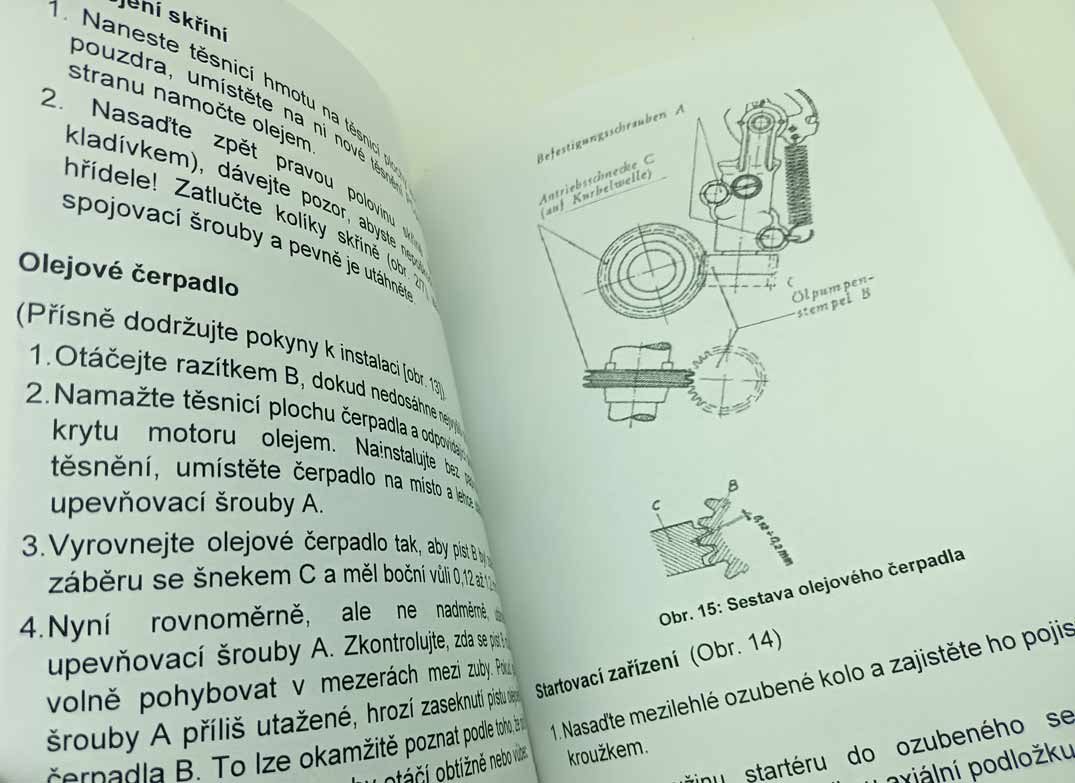 Jde o nově vytištěnou černobílou kopii, neořezaná brožura – sešit, sešitá jen sponami, pokud se použitím rozešijí, sami si ji doma opravíte kancelářskou sešívačkou. Kopírováno podle originálu, text s neaktuálními a z pohledu údržbářko-opravárenského nadbytečnými informacemi nemusí být přenesen. Jazyk i kvalitu přepisu brožury odhadnete z obrázkových ukázek konkrétní nabídky. Písmo může být zmenšené (originál je A4, ale vytištění je na A5), barva přebalu – desky přední strany se mohou lišit od vyobrazení. Kvalita přetisku je kolísavá, nemůžeme garantovat čitelnost větší než 80 %. Je to dáno jednak nedokonalostí při přetisku, jde o kopírování starých a notně používaných příruček, nikoliv nově přepsaný text a také výtisk již v originále nebývá kvalitní. V mnoha případech jde ještě o text psaný ručně strojem. Tato kopie neslouží jako plnohodná knížka ke čtení, ale jen jako částečná náhrada za již těžko sehnatelnou původní knížku a musíte se smířit s tím, že nějaká sdělení či obrázky nerozluštíte. Proto prosím tento výtisk neobjednávejte, pokud máte možnost sehnat novotisk nebo dobře čitelný originál, tento výtisk se s nimi nemůže srovnávat ani v reprodukci obrázků ani v čitelnosti textů a nelze tento fakt uplatnit při případné reklamaci. Garantuje jen počet potištěných stránek a nikoliv to, že vše dokonale přečtete. Pokud od nabízeného sešitu očekáváte specifikaci něčeho konkrétního (např. schéma elektro zapojení, hydrauliky, zda obsahuje obrázky apod.), prosím předem položte dotaz emailem před koupí, sdělím Vám, zda se požadovaná informace v sešitě nachází. Zejména u vyššího počtu stran je nutné počítat s tím, že sdělená textová informace je nadřazena nad estetickým a knižním zpracováním.
