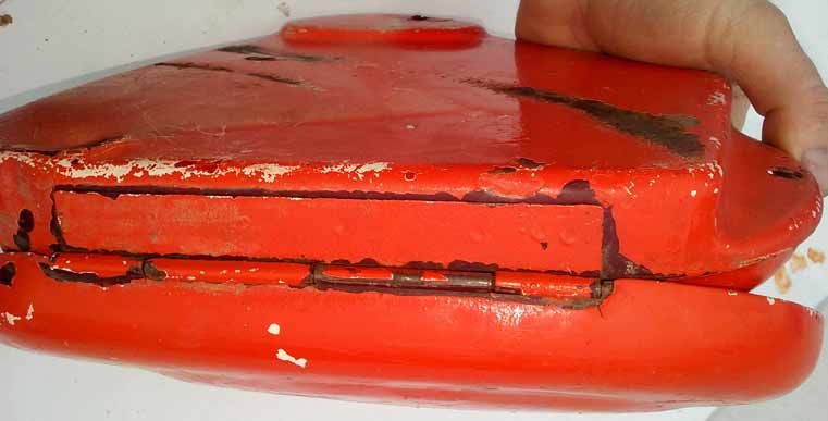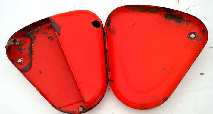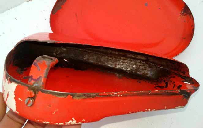 Schránka na nářadí Jawa pérák komunista. Kastlík na na nářadí na komunistu. Koroze, stáří, otlačky, na renovaci a ke sběratelským účelům bez záruky na cokoliv. Stav viz obrázky