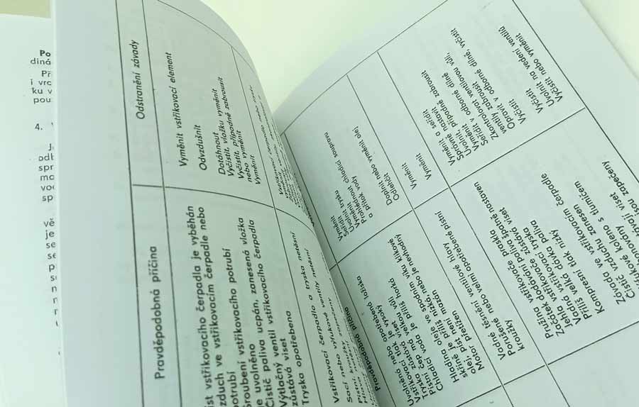 Jde o nově vytištěnou černobílou kopii, neořezaná brožura – sešit, sešitá jen sponami, pokud se použitím rozešijí, sami si ji doma opravíte kancelářskou sešívačkou. Kopírováno podle originálu, text s neaktuálními a z pohledu údržbářko-opravárenského nadbytečnými informacemi nemusí být přenesen. Jazyk i kvalitu přepisu brožury odhadnete z obrázkových ukázek konkrétní nabídky. Písmo může být zmenšené (originál je A4, ale vytištění je na A5), barva přebalu – desky přední strany se mohou lišit od vyobrazení. Kvalita přetisku je kolísavá, nemůžeme garantovat čitelnost větší než 80 %. Je to dáno jednak nedokonalostí při přetisku, jde o kopírování starých a notně používaných příruček, nikoliv nově přepsaný text a také výtisk již v originále nebývá kvalitní. V mnoha případech jde ještě o text psaný strojem. Tato kopie neslouží jako plnohodná knížka ke čtení, ale jen jako částečná náhrada za již těžko sehnatelnou původní knížku a musíte se smířit s tím, že nějaká sdělení či obrázky nerozluštíte. Proto prosím tento výtisk neobjednávejte, pokud máte možnost sehnat novotisk nebo dobře čitelný originál, tento výtisk se s nimi nemůže srovnávat ani v reprodukci obrázků ani v čitelnosti textů a nelze tento fakt uplatnit při případné reklamaci. Garantuje jen počet potištěných stránek a nikoliv to, že vše dokonale přečtete. Pokud od nabízeného sešitu očekáváte specifikaci něčeho konkrétního (např. schéma elektro zapojení, hydrauliky, zda obsahuje obrázky apod.), prosím předem položte dotaz emailem před koupí, sdělím Vám, zda se požadovaná informace v sešitě nachází. Zejména u vyššího počtu stran je nutné počítat s tím, že sdělená textová informace je nadřazena nad estetickým a knižním zpracováním.
