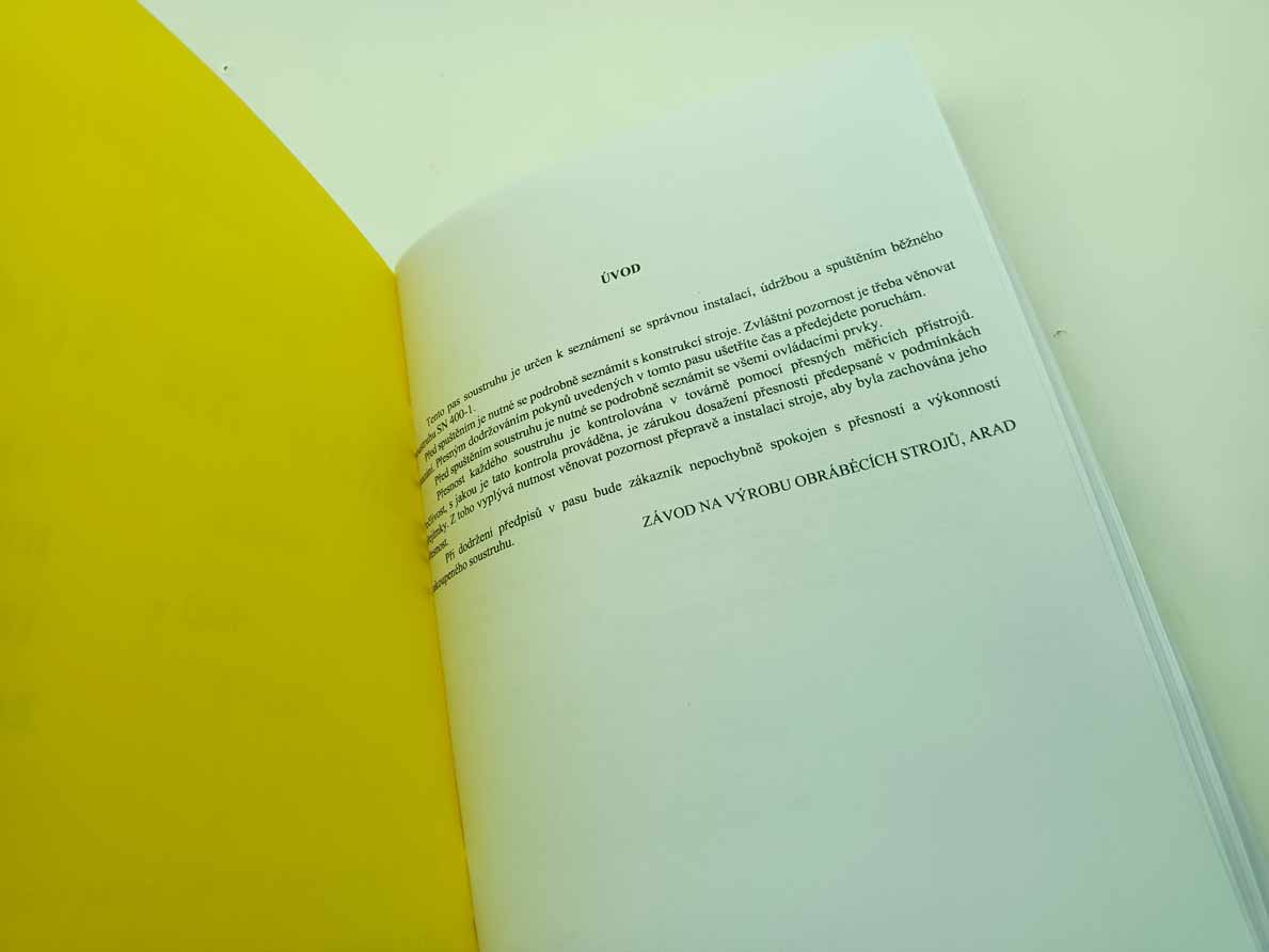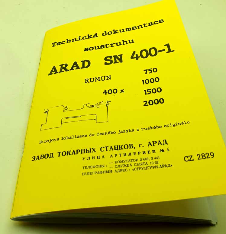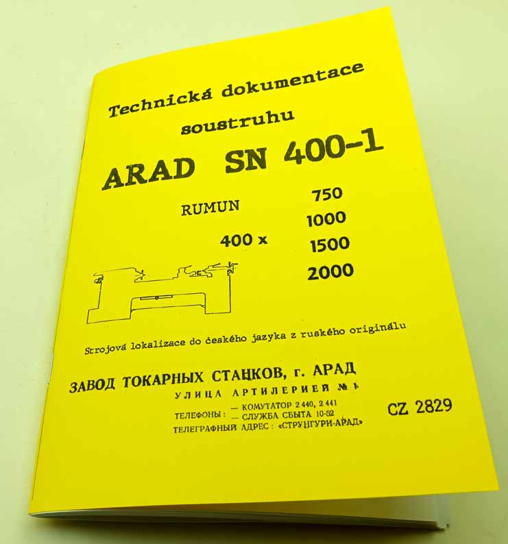 Soustruh Arad SN 400-1 – Rumun- Návod k obsluze reprint. Jde o strojovou lokalizaci do češtiny z ruského originálu – Výrobce Uzina de Strunguri Arad Romania. Pro modely točné délky 400 x 750, 1000, 1500, 2000.