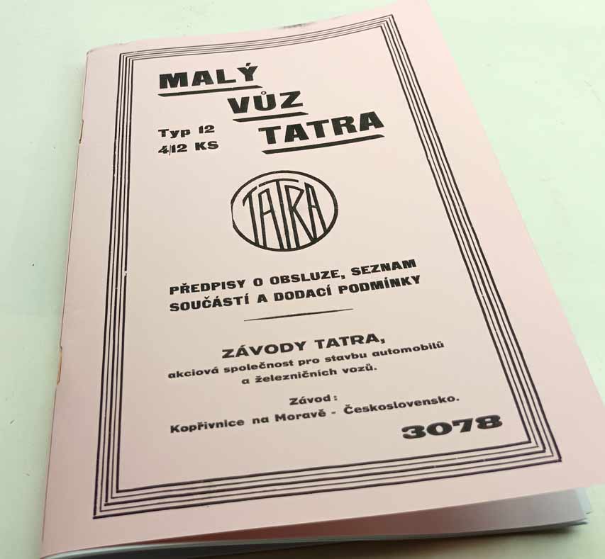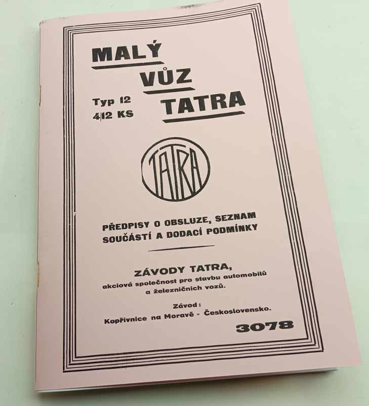 Tatra 12 Obsluha a katalog náhradních dílů reprint. Malý vůz Tatra typ 12 4/12Ks předpisy o obsluze, seznam součástí a dodací podmínky