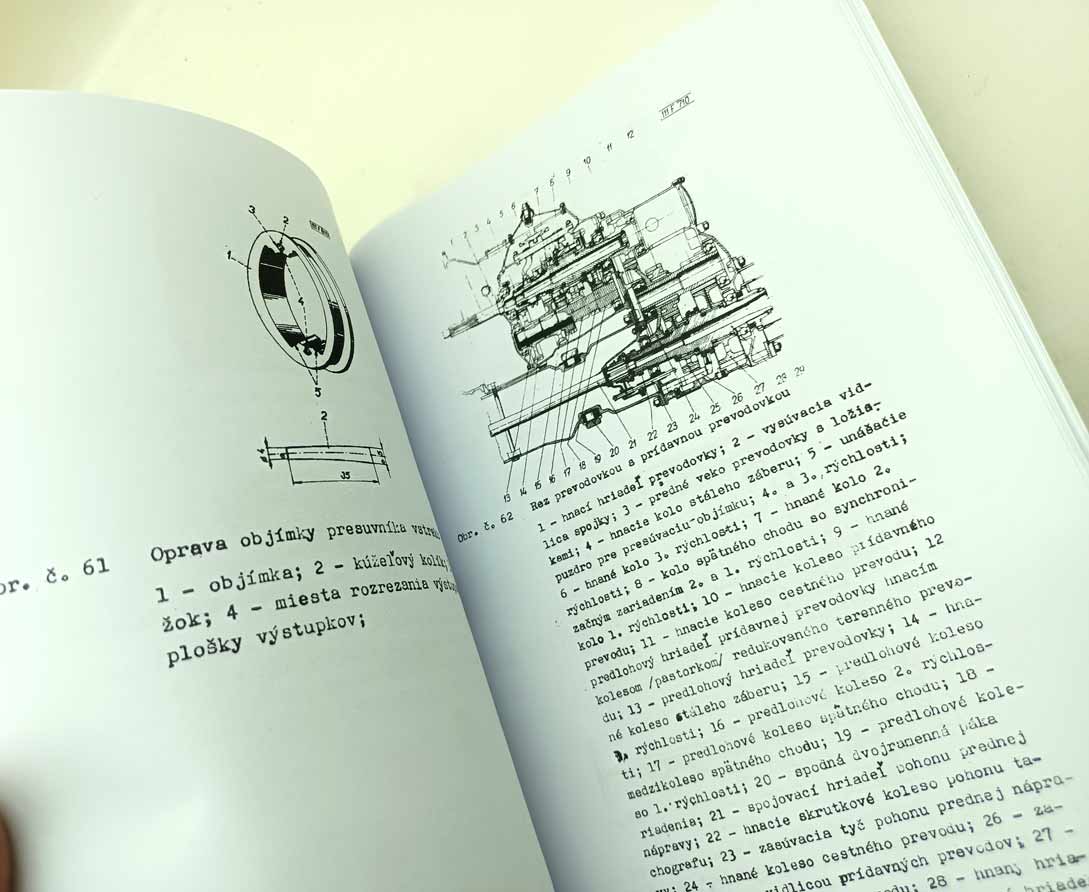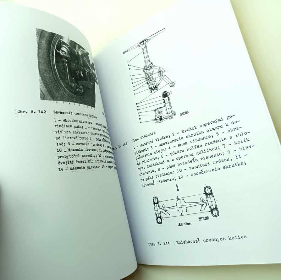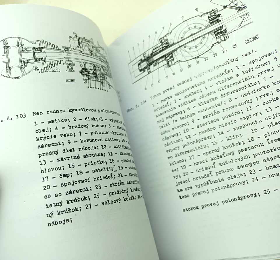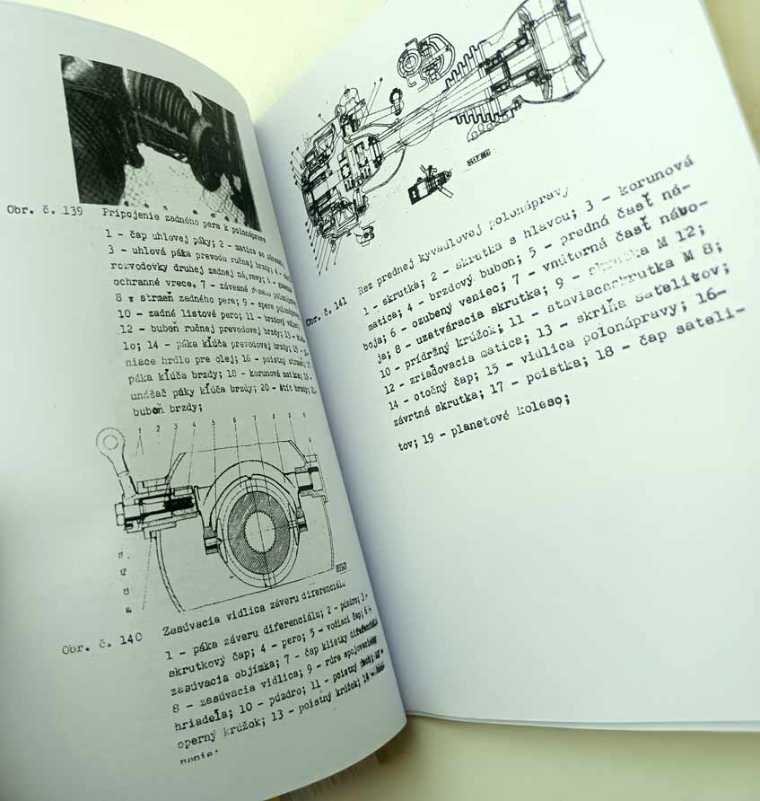 Jde o nově vytištěnou černobílou kopii, neořezaná brožura – sešit, sešitá jen sponami, pokud se použitím rozešijí, sami si ji doma opravíte kancelářskou sešívačkou. Kopírováno podle originálu, text s neaktuálními a z pohledu údržbářko-opravárenského nadbytečnými informacemi nemusí být přenesen. Jazyk i kvalitu přepisu brožury odhadnete z obrázkových ukázek konkrétní nabídky. Písmo může být zmenšené (originál je A4, ale vytištění je na A5), barva přebalu – desky přední strany se mohou lišit od vyobrazení. Kvalita přetisku je kolísavá, nemůžeme garantovat čitelnost větší než 80 %. Je to dáno jednak nedokonalostí při přetisku, jde o kopírování starých a notně používaných příruček, nikoliv nově přepsaný text a také výtisk již v originále nebývá kvalitní. V mnoha případech jde ještě o text psaný strojem. Tato kopie neslouží jako plnohodná knížka ke čtení, ale jen jako částečná náhrada za již těžko sehnatelnou původní knížku a musíte se smířit s tím, že nějaká sdělení či obrázky nerozluštíte. Proto prosím tento výtisk neobjednávejte, pokud máte možnost sehnat novotisk nebo dobře čitelný originál, tento výtisk se s nimi nemůže srovnávat ani v reprodukci obrázků ani v čitelnosti textů a nelze tento fakt uplatnit při případné reklamaci. Garantuje jen počet potištěných stránek a nikoliv to, že vše dokonale přečtete. Pokud od nabízeného sešitu očekáváte specifikaci něčeho konkrétního (např. schéma elektro zapojení, hydrauliky, zda obsahuje obrázky apod.), prosím předem položte dotaz emailem před koupí, sdělím Vám, zda se požadovaná informace v sešitě nachází. Zejména u vyššího počtu stran je nutné počítat s tím, že sdělená textová informace je nadřazena nad estetickým a knižním zpracováním.