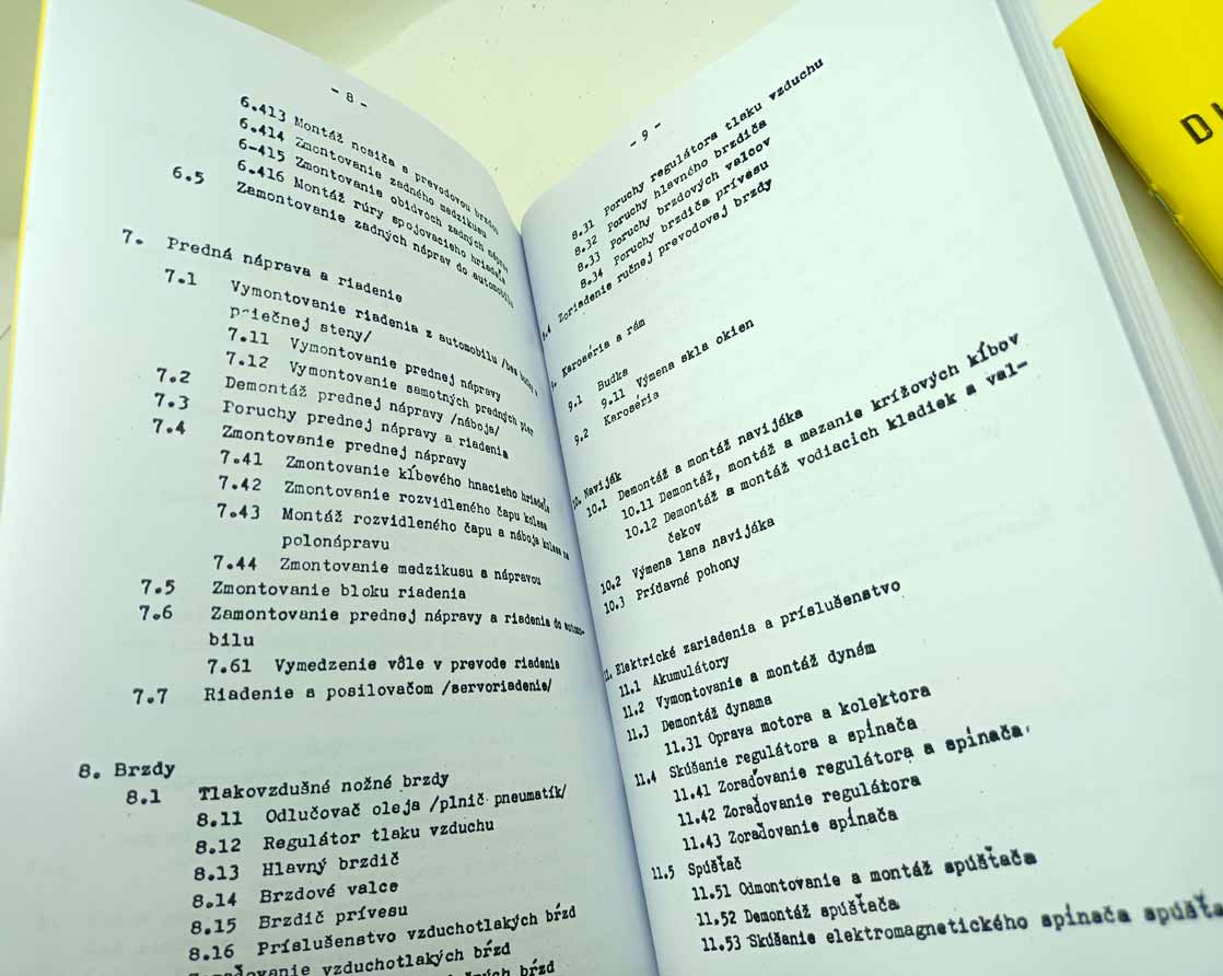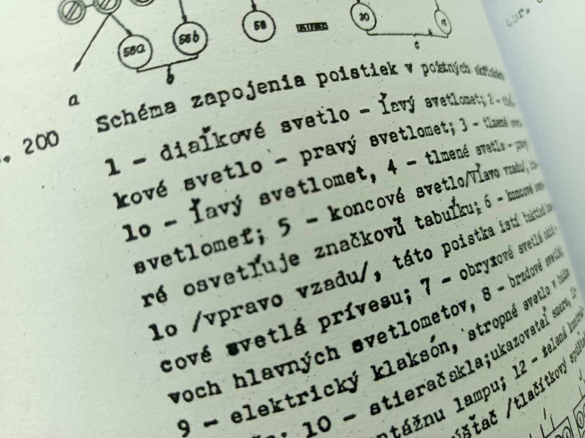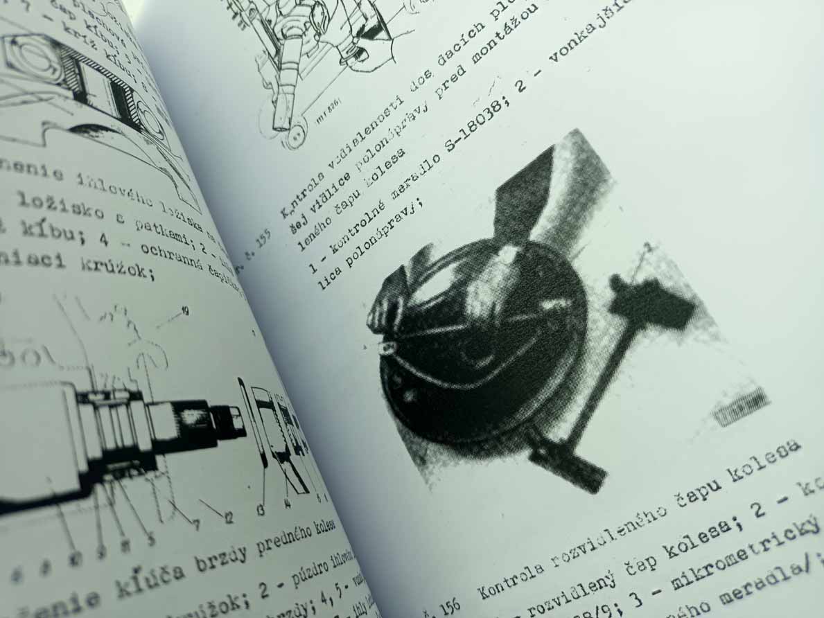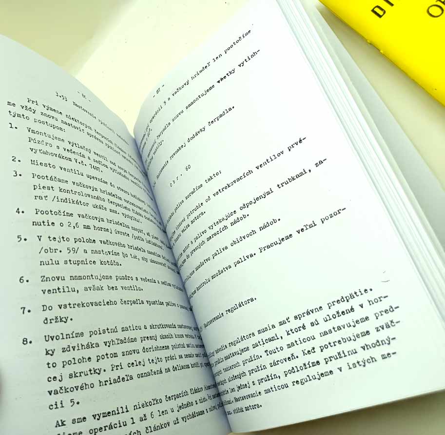 Jde o nově vytištěnou černobílou kopii, neořezaná brožura – sešit, sešitá jen sponami, pokud se použitím rozešijí, sami si ji doma opravíte kancelářskou sešívačkou. Kopírováno podle originálu, text s neaktuálními a z pohledu údržbářko-opravárenského nadbytečnými informacemi nemusí být přenesen. Jazyk i kvalitu přepisu brožury odhadnete z obrázkových ukázek konkrétní nabídky. Písmo může být zmenšené (originál je A4, ale vytištění je na A5), barva přebalu – desky přední strany se mohou lišit od vyobrazení. Kvalita přetisku je kolísavá, nemůžeme garantovat čitelnost větší než 80 %. Je to dáno jednak nedokonalostí při přetisku, jde o kopírování starých a notně používaných příruček, nikoliv nově přepsaný text a také výtisk již v originále nebývá kvalitní. V mnoha případech jde ještě o text psaný strojem. Tato kopie neslouží jako plnohodná knížka ke čtení, ale jen jako částečná náhrada za již těžko sehnatelnou původní knížku a musíte se smířit s tím, že nějaká sdělení či obrázky nerozluštíte. Proto prosím tento výtisk neobjednávejte, pokud máte možnost sehnat novotisk nebo dobře čitelný originál, tento výtisk se s nimi nemůže srovnávat ani v reprodukci obrázků ani v čitelnosti textů a nelze tento fakt uplatnit při případné reklamaci. Garantuje jen počet potištěných stránek a nikoliv to, že vše dokonale přečtete. Pokud od nabízeného sešitu očekáváte specifikaci něčeho konkrétního (např. schéma elektro zapojení, hydrauliky, zda obsahuje obrázky apod.), prosím předem položte dotaz emailem před koupí, sdělím Vám, zda se požadovaná informace v sešitě nachází. Zejména u vyššího počtu stran je nutné počítat s tím, že sdělená textová informace je nadřazena nad estetickým a knižním zpracováním.