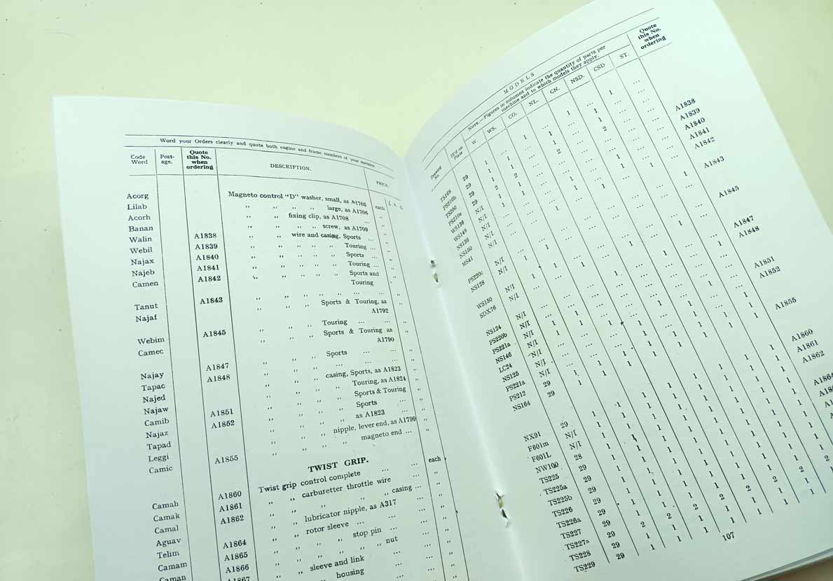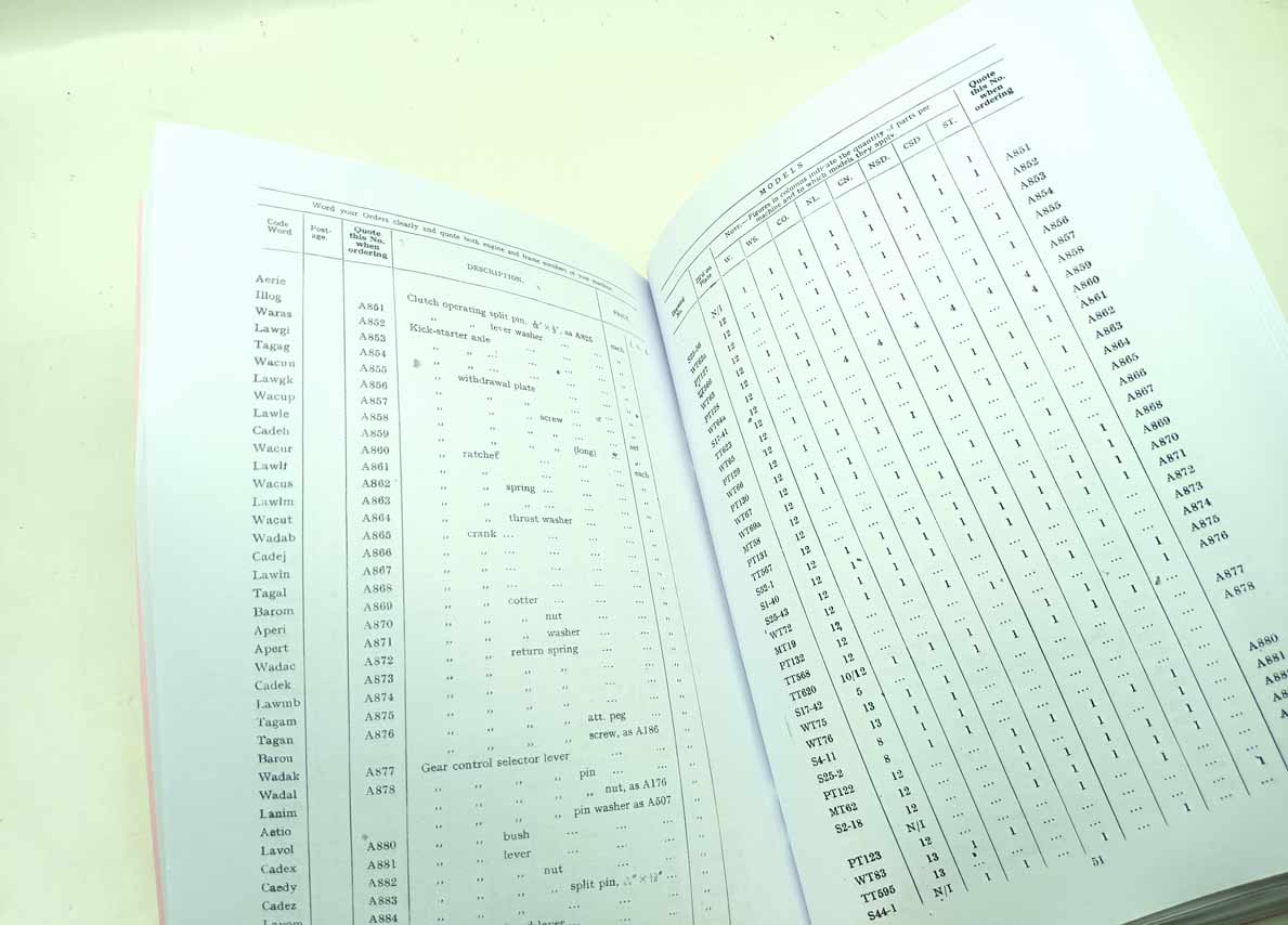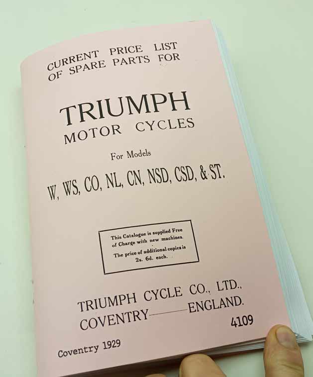 Triumph Motor Cycles pro modely W, WS, CO, NL, CN, NSD, CSD, ST reprint