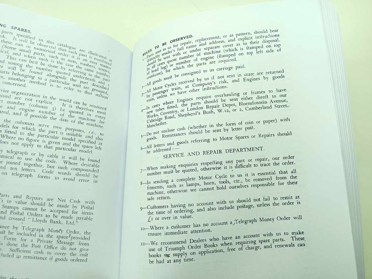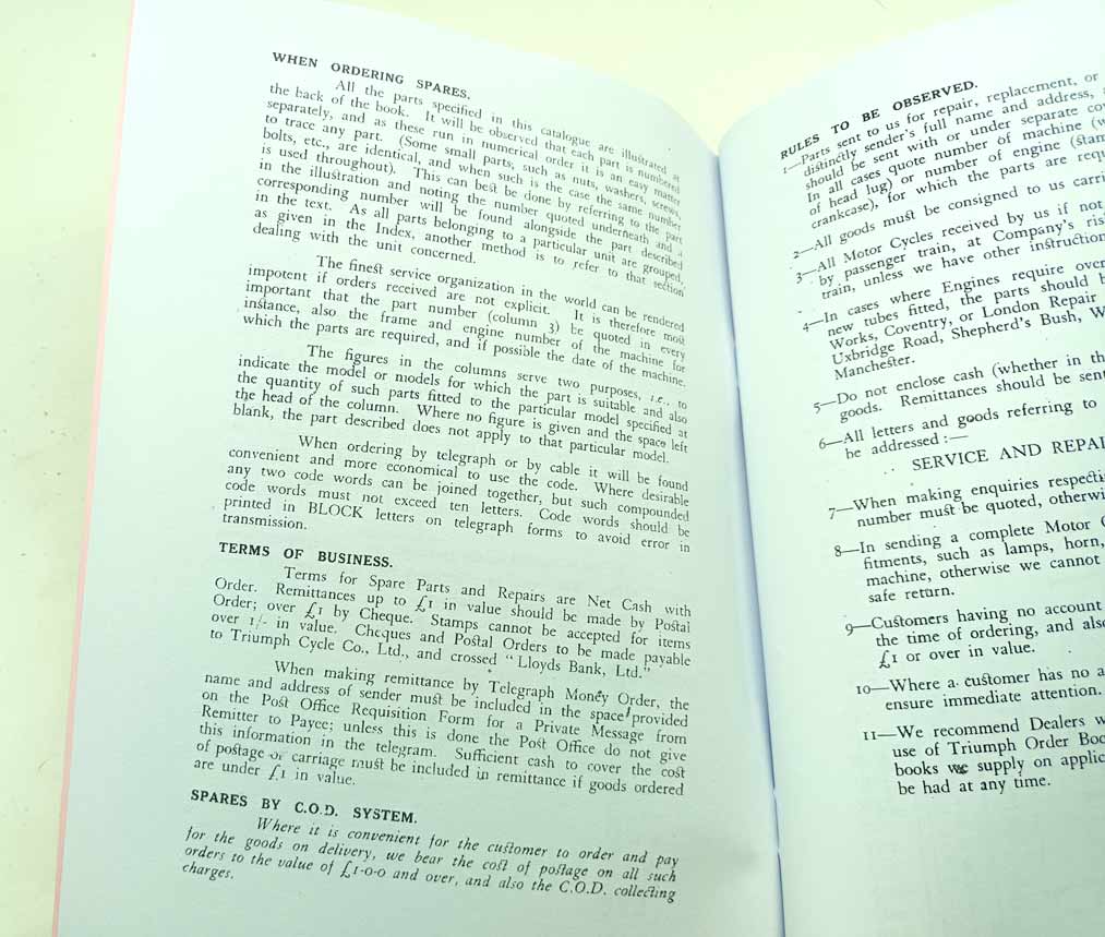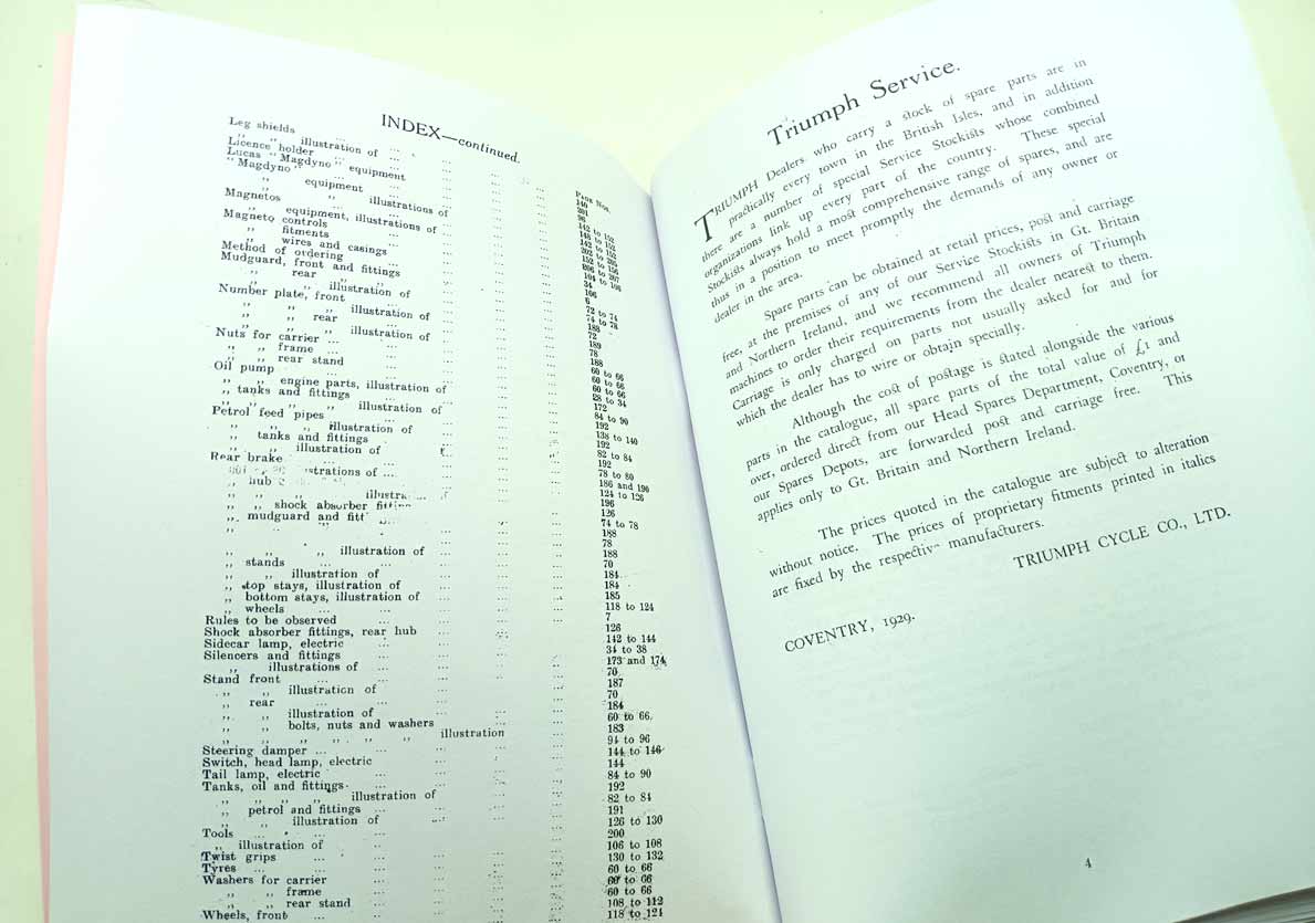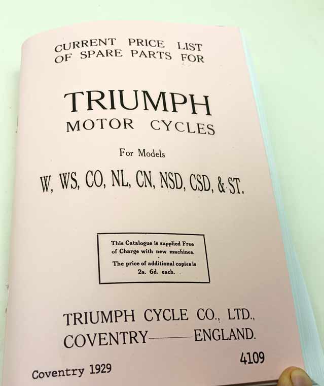 Triumph Motor Cycles pro modely W, WS, CO, NL, CN, NSD, CSD, ST reprint. Katalog je vydaný v roce 1929 v Coventry a je v angličtině