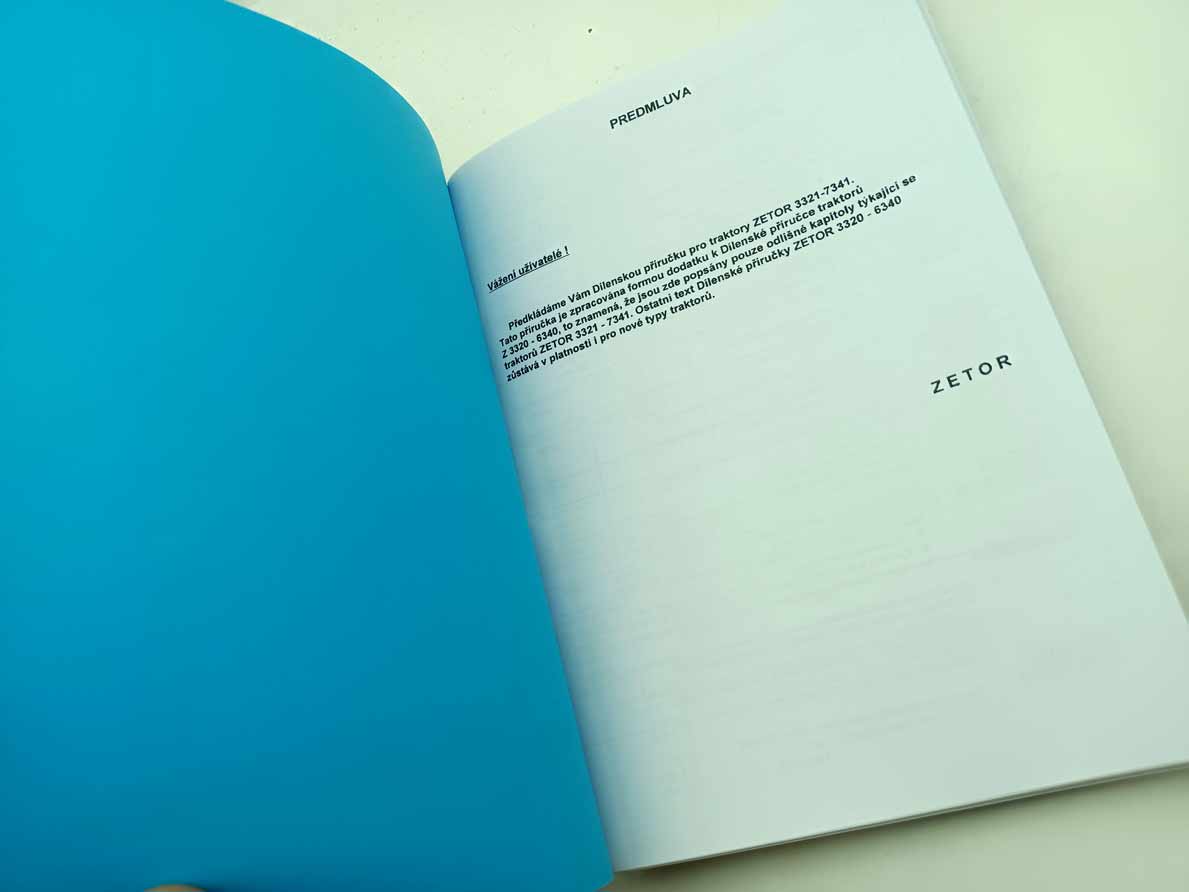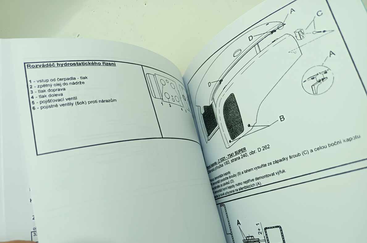 Jde o nově vytištěnou černobílou kopii, neořezaná brožura – sešit, sešitá jen sponami, pokud se použitím rozešijí, sami si ji doma opravíte kancelářskou sešívačkou. Kopírováno podle originálu, text s neaktuálními a z pohledu údržbářko-opravárenského nadbytečnými informacemi nemusí být přenesen. Jazyk i kvalitu přepisu brožury odhadnete z obrázkových ukázek konkrétní nabídky. Písmo může být zmenšené (originál je A4, ale vytištění je na A5), barva přebalu – desky přední strany se mohou lišit od vyobrazení. Kvalita přetisku je kolísavá, nemůžeme garantovat čitelnost větší než 80 %. Je to dáno jednak nedokonalostí při přetisku, jde o kopírování starých a notně používaných příruček, nikoliv nově přepsaný text a také výtisk již v originále nebývá kvalitní. V mnoha případech jde ještě o text psaný strojem. Tato kopie neslouží jako plnohodná knížka ke čtení, ale jen jako částečná náhrada za již těžko sehnatelnou původní knížku a musíte se smířit s tím, že nějaká sdělení či obrázky nerozluštíte. Proto prosím tento výtisk neobjednávejte, pokud máte možnost sehnat novotisk nebo dobře čitelný originál, tento výtisk se s nimi nemůže srovnávat ani v reprodukci obrázků ani v čitelnosti textů a nelze tento fakt uplatnit při případné reklamaci. Garantuje jen počet potištěných stránek a nikoliv to, že vše dokonale přečtete. Pokud od nabízeného sešitu očekáváte specifikaci něčeho konkrétního (např. schéma elektro zapojení, hydrauliky, zda obsahuje obrázky apod.), prosím předem položte dotaz emailem před koupí, sdělím Vám, zda se požadovaná informace v sešitě nachází. Zejména u vyššího počtu stran je nutné počítat s tím, že sdělená textová informace je nadřazena nad estetickým a knižním zpracováním.